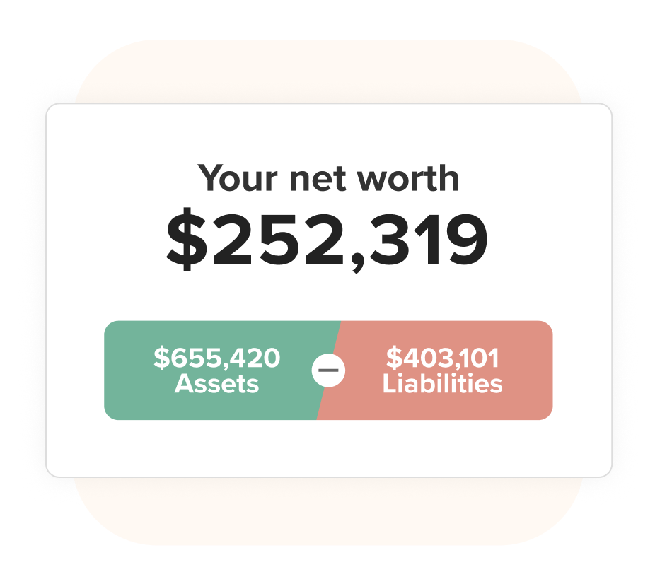 Keep track of what you own, and what you owe. Add property, mortgages, vehicles, loans and more.