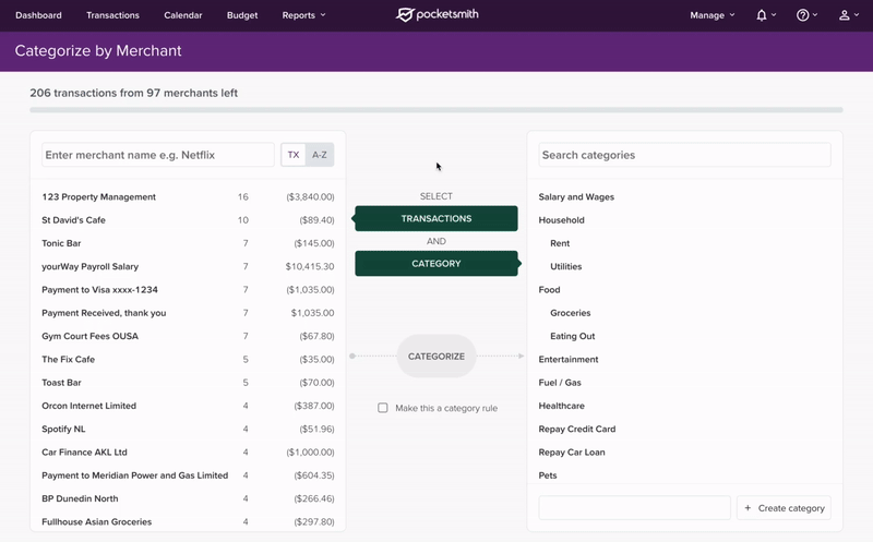 This will allow you to quickly categorise a large number of common merchants more efficiently, meaning you can get on with other tasks. Become a beta user and give this a shot via Manage > Categorize by Merchant!