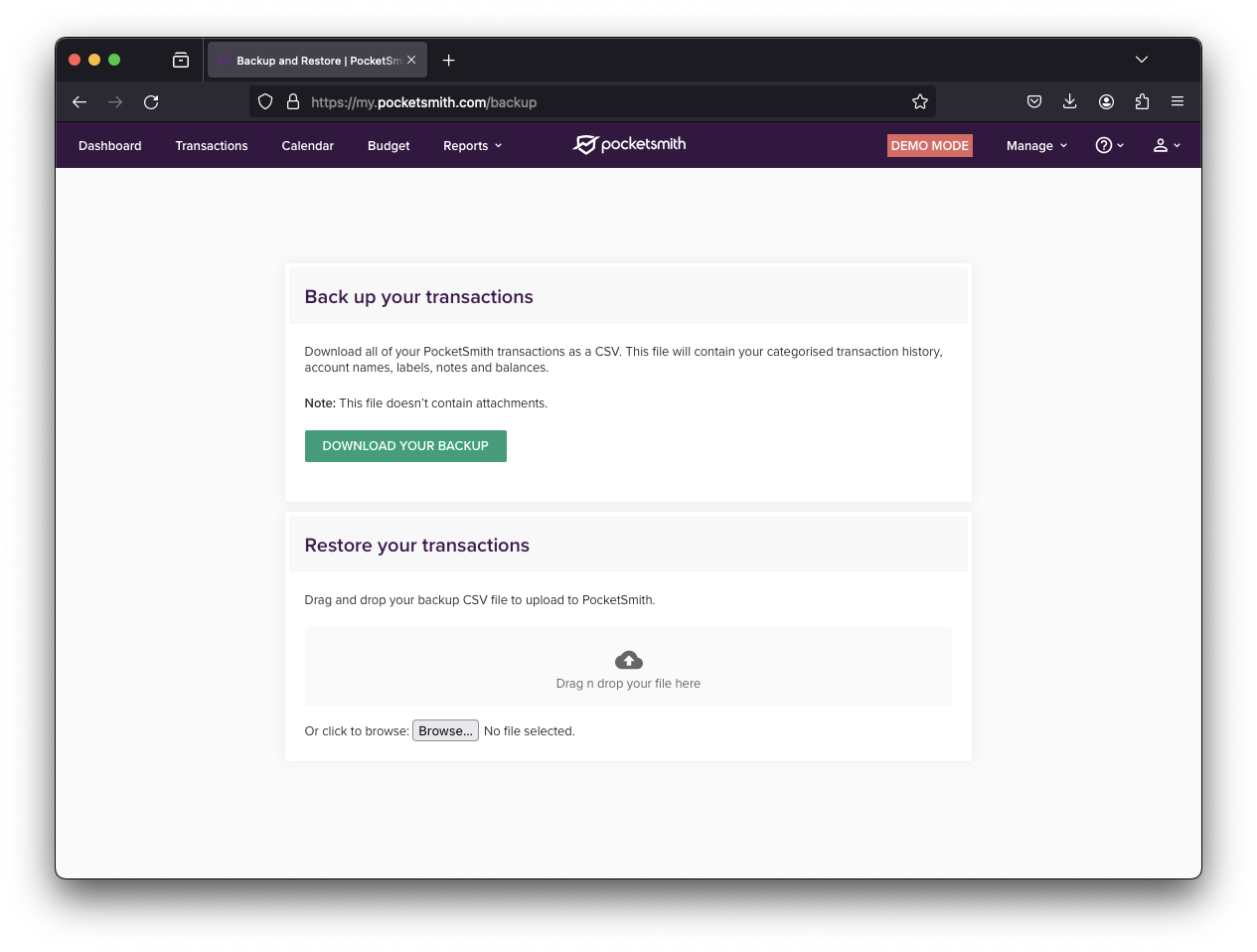 A new Backup and Restore feature has been released, which allows you to back up all your transaction information into CSV. This extends the previous CSV downloads that were available, to now include bank and account number information.