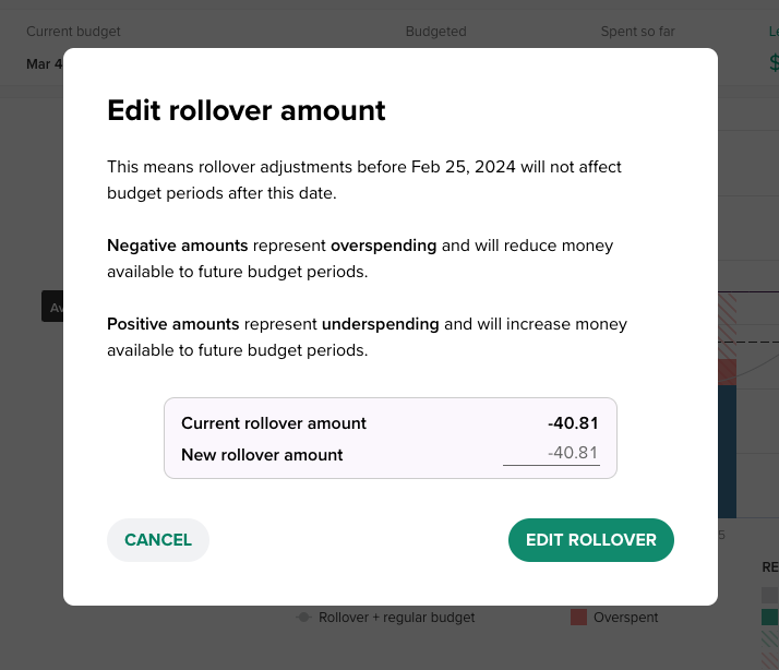Up until now, the rollover beta feature has only allowed you to reset an individual rollover amount for a period to $0. We’ve just released an update so that you can edit individual rollover amounts to any value that you require.