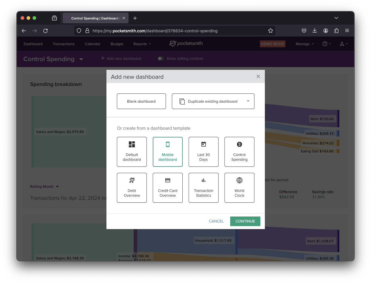 You can find this template when clicking “Add new dashboard” on the web application. Then when you load the Dashboard on mobile, if you’ve not previously selected a dashboard on your device, the first one with “mobile” in the dashboard name will be chosen automatically.
