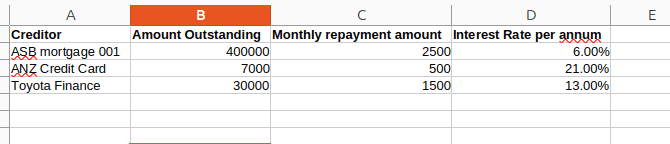 Open up a spreadsheet and start listing down the debt that you have. Be sure to list down the amount outstanding (as of today), the monthly repayment amount and the interest rate per annum that you have to make.