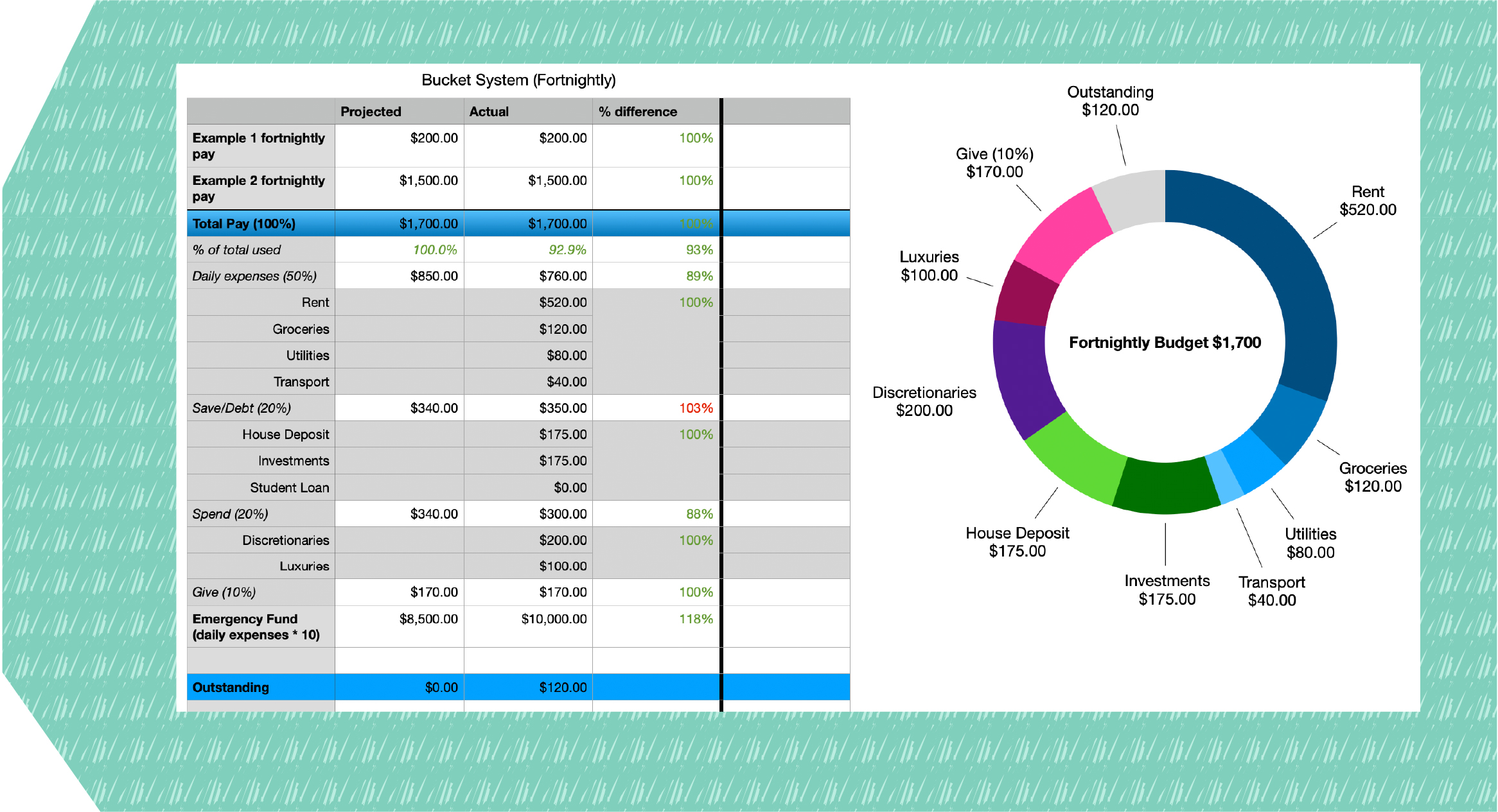 I’ve had this thing for years, since well before I joined PocketSmith. It takes me all of 30 seconds to plug in my inputs in the form of projected income sources. Loosely based on The Barefoot Investor’s ‘bucket’ system, it then tots up this income and splits it out into separate buckets: