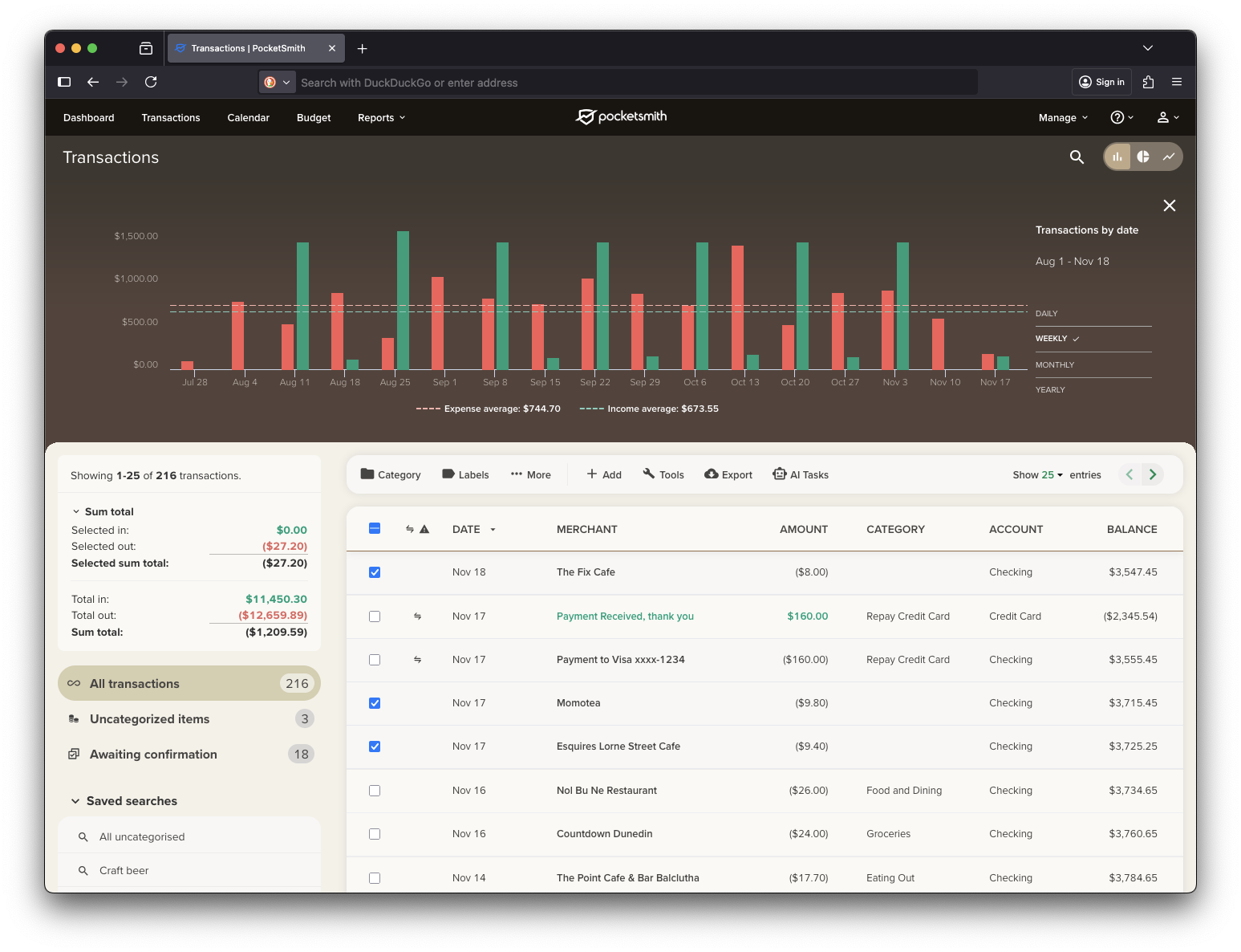 We’ve moved the summary of transactions to the sidebar, where you’ll also find the transaction counts along with the sum total statistics that used to exist above the transaction table. This aligns with the logic of collating view information and functionality together in the sidebar, and creates more vertical space for scrolling transactions!