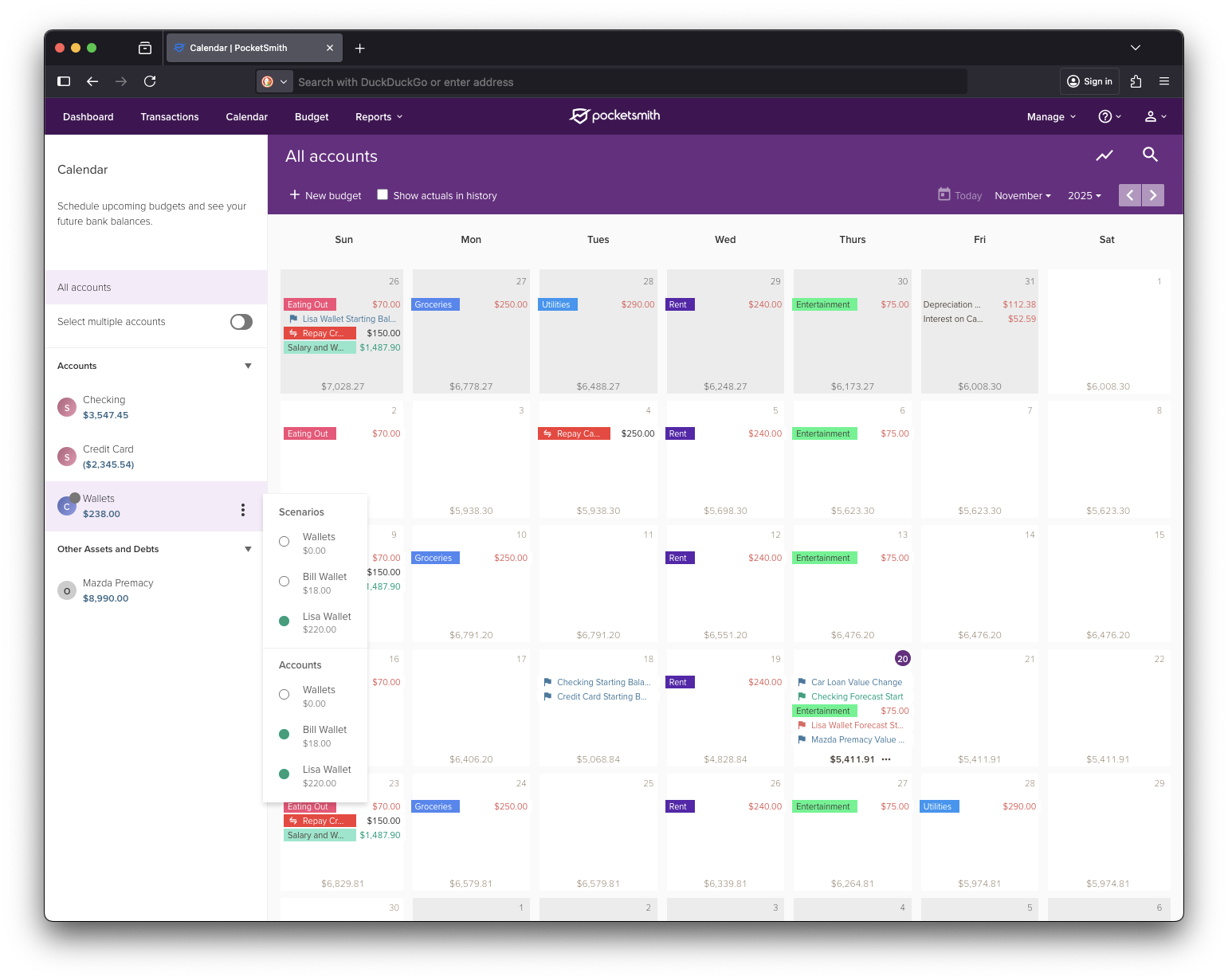 Grouped account management in the sidebar has also been significantly improved, replacing the obscure three-dot menu popup that was there previously. A toggle appears on the right of each item in the side, which expands to allow easy control over which scenarios and accounts are shown within the calendar. I think there may have been a collective sigh of bliss from the whole team for this change!
