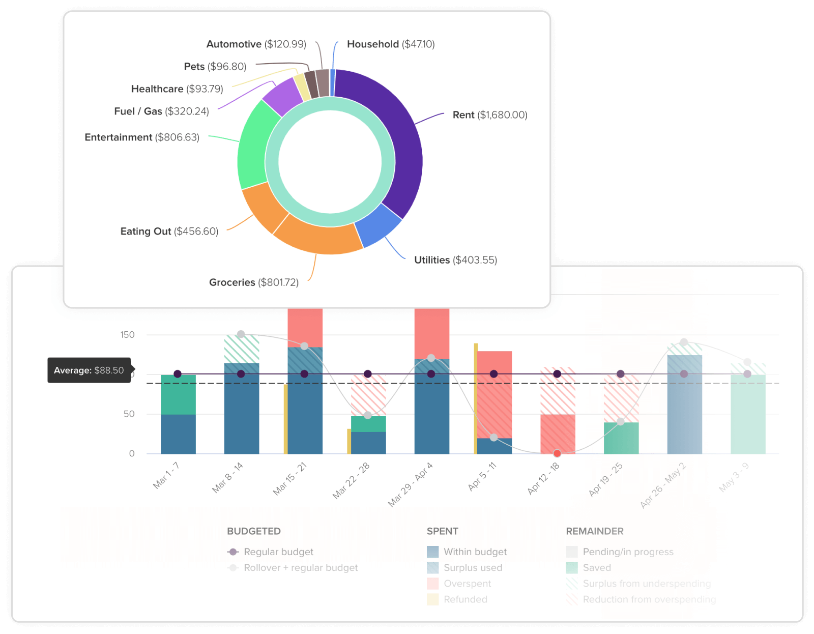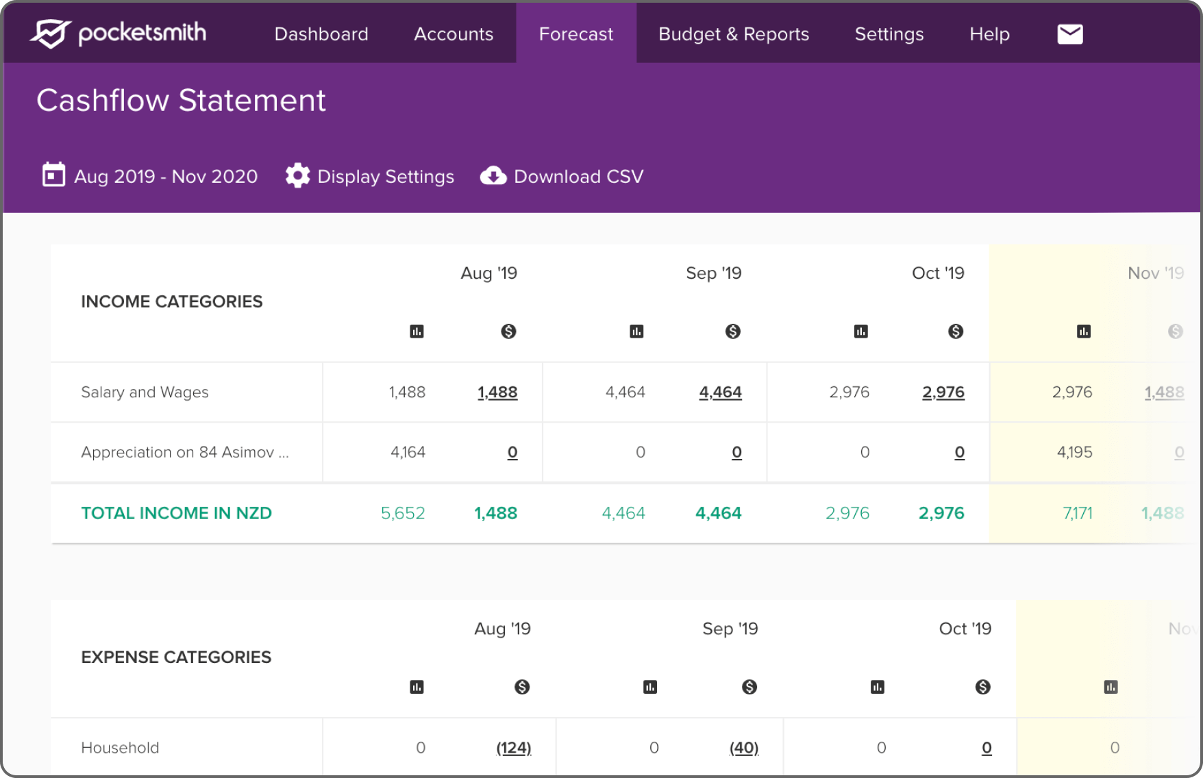 See your historical and projected monthly totals by category.