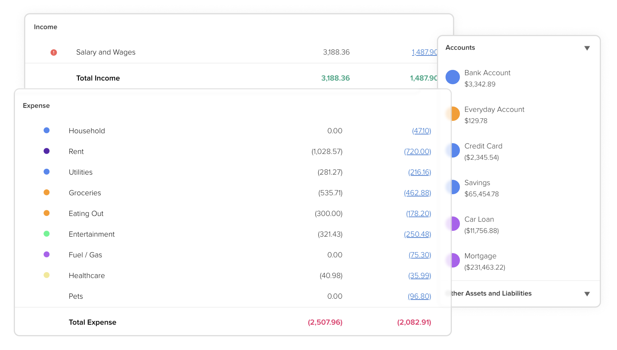 Your money is automatically organized into an interactive cashflow table that lets you click figures to see each set of transactions.