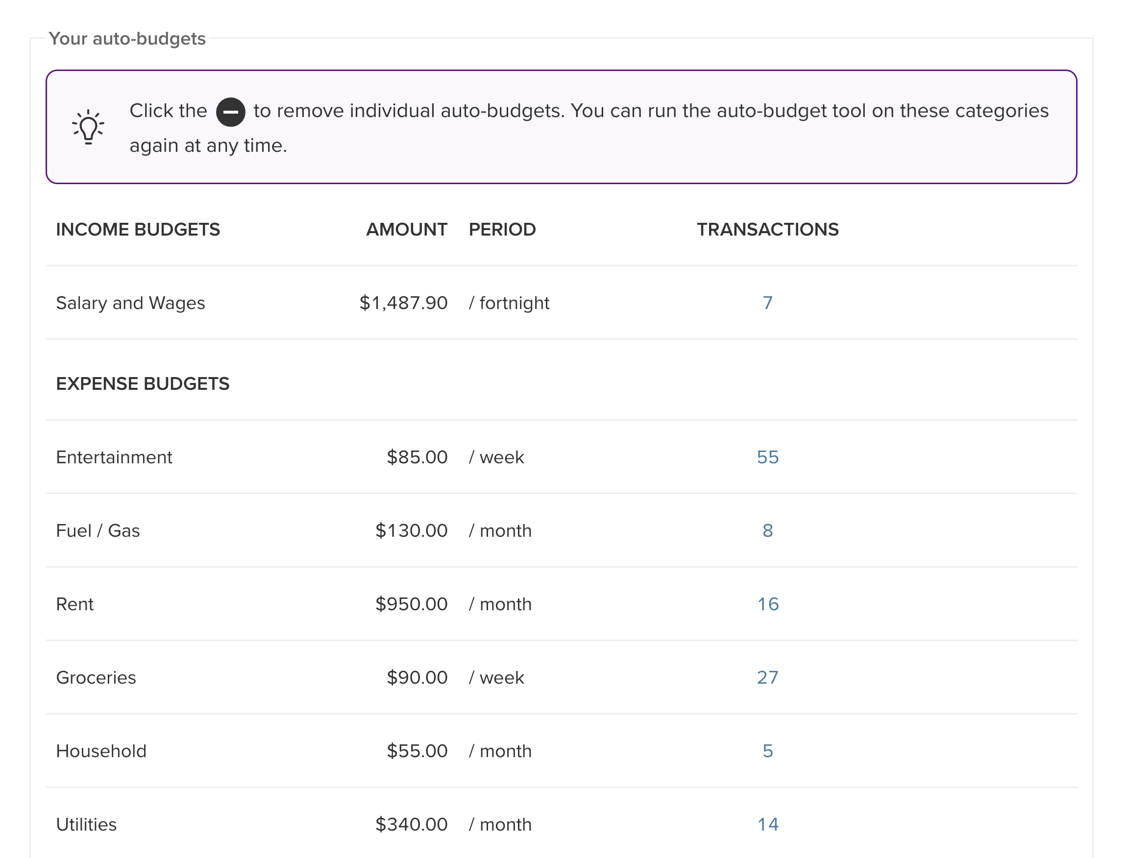 Firstly, auto-budgets is now more stringent in creating budgets, which means you’re far less likely to have budgets created for small amounts - for example, a refund that you’d received in your “Groceries” category.