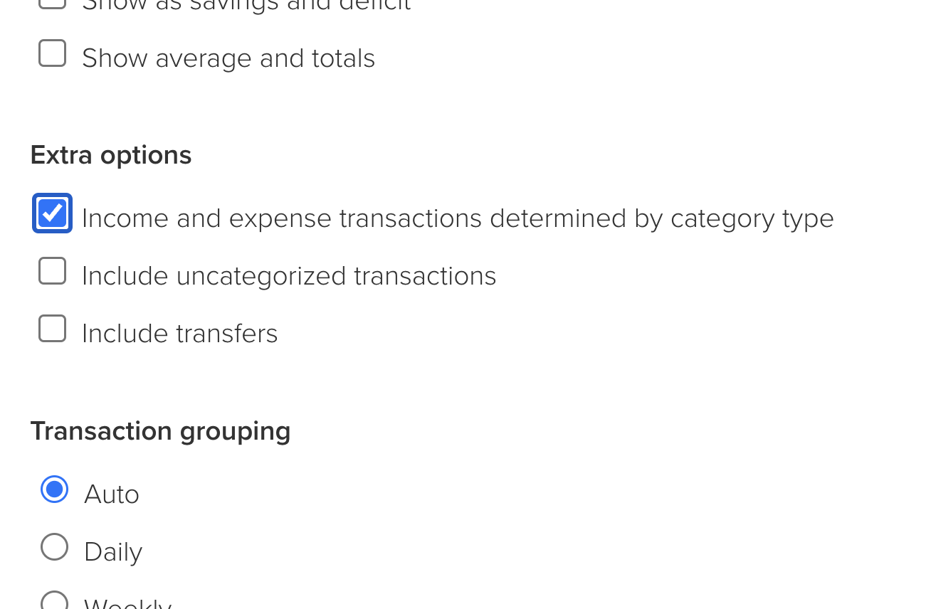 Activating this option will mean that the widget refers to a transaction’s category type to determine whether it should show within the earned or spent column. An example outcome of this is that refunds will now be taken in account, reducing the amount that appears in a “spending” column.